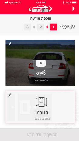 אוטוספין - אפליקציה לרכישה ומכירת רכבי יד שנייה, ע'י טכנולוגיה ייחודית לצילום וצפייה בפנים וחוץ הרכב ב360 מעלות, ללא עזרים מיוחדים, או אנשי מקצוע יקרים, ב 60 שניות בלבד, באמצעות הטלפון הנייד!